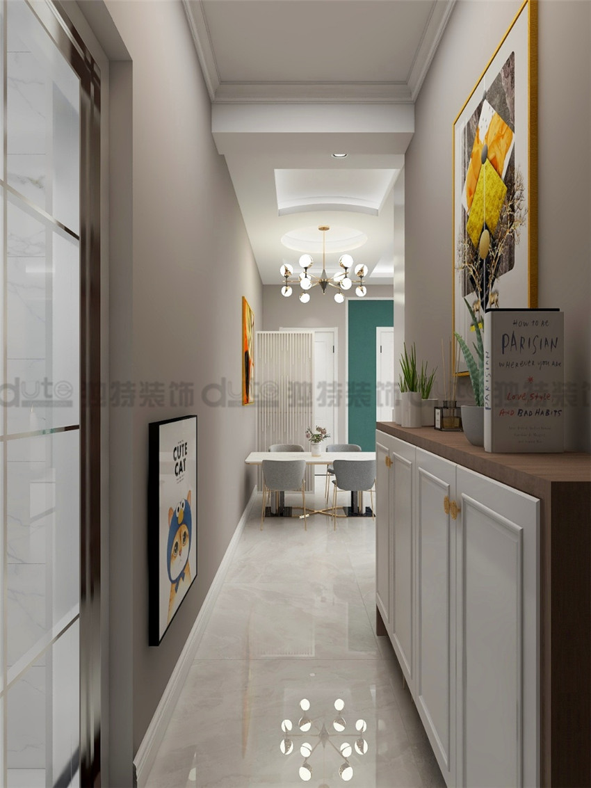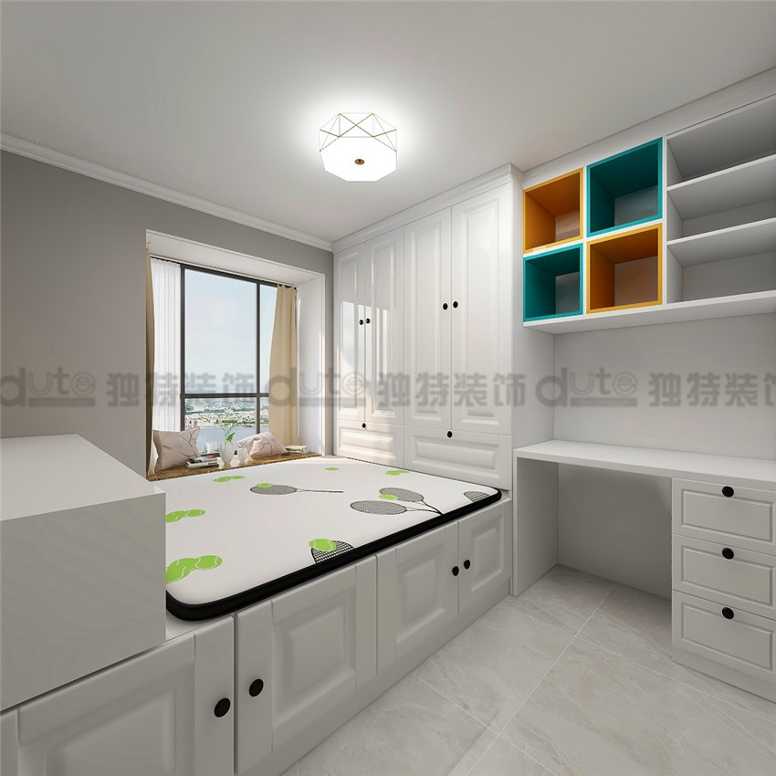 案例說明: 業(yè)主:張女士,張姐給孩子買的婚房,孩子外地工作,趁端午節(jié)回來定的裝修,客戶對獨特裝飾優(yōu)樂美居體驗館的體驗效果非常好,最后選擇了獨特裝飾,婚房設(shè)計,第一要求空間合理規(guī)劃,不要有浪費(fèi)空間,第二 ,存儲空間需要,所以次臥室以榻榻米+衣柜+寫字臺為主,衛(wèi)生間無采光,采用臉色系列墻地磚,廚房空間全屋定制,空間合理規(guī)劃,戶型不足點:1、衛(wèi)生間空間小,無法放下洗衣機(jī),洗衣機(jī)放到陽臺區(qū)域;2、廚房空間不大,冰箱只能放客餐廳;3、入戶門廳太窄,鞋柜空間小,采用斜插式鞋柜;4、入戶正對著廚房門,過道長,采用冰箱+隔斷處理,作為一個屏風(fēng)玄關(guān),一舉兩得;效果出來業(yè)主非常滿意。