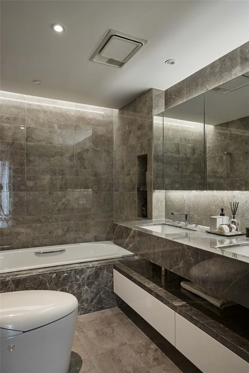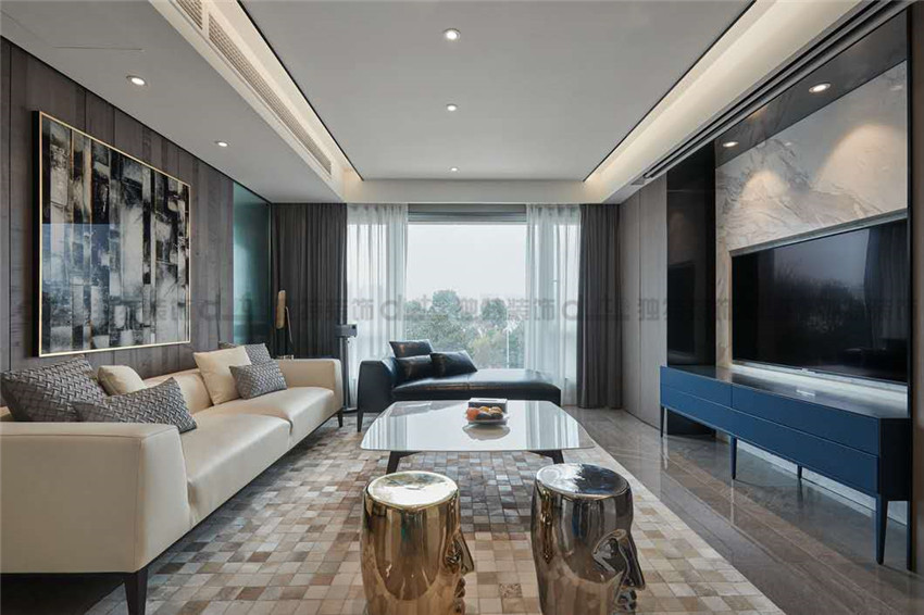 案例說明:整體方案以現(xiàn)代中式風格為主,主要采用暖灰色系列,整體裝修以簡約大方為主。整套方案空間感比較良好,整個家的墻壁使用高級灰乳膠漆,顯得更加清新舒適。吊頂造型也比較簡單,全屋地面整體采用灰色系列拋釉大地磚通鋪。色調的統(tǒng)一和諧,搭配上簡約舒適的棉麻材質的布藝,簡單而又靜雅,是整個家的靈魂所在。